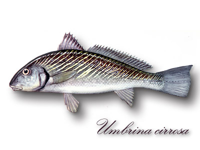 Ombrina. Perciforme, (Umbrina cirrosa). Umbrina coracina. |