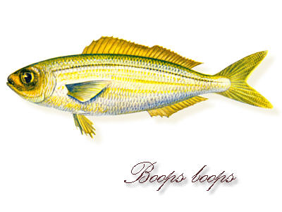 Boga. Perciforme, (Bops bops). etim. Latino "bops". |