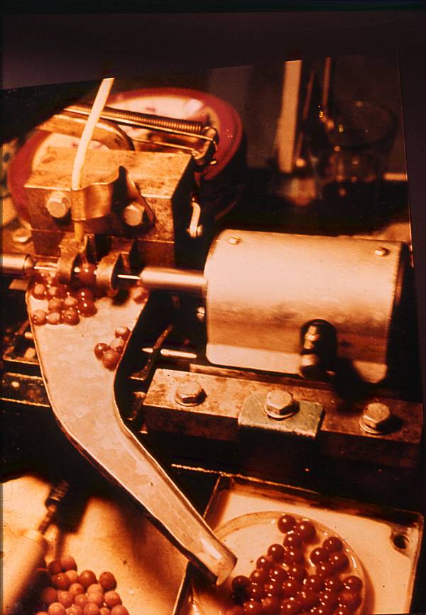 Fase della bucatura automatica delle sfere di corallo