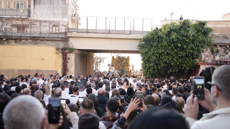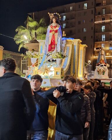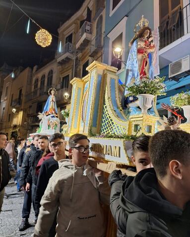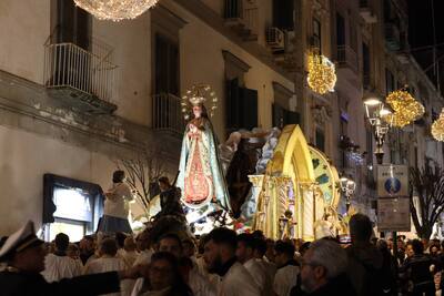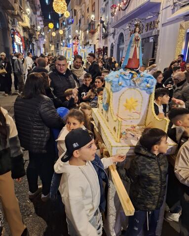 Torre del Greco, trentamila fedeli in strada per l’Immacolata ' Torre del Greco. Una marea silenziosa e commossa, un lungo abbraccio di fede capace di avvolgere ogni angolo del centro cittadino: in una piazza Santa Croce gremita come raramente in passato, la statua dell’Immacolata è uscita puntuale dalla navata centrale della basilica di Santa Croce, dando il via a una delle celebrazioni più partecipate e sentite in città. Si stima siano state circa trentamila le persone – uomini, donne, anziani, giovani e bambini – a onorare la tradizione, unendosi in preghiera e devozione all’ombra del Vesuvio. Quando il maestoso carro trionfale – quest’anno realizzato dall’artista Salvatore di Lecce – ha varcato la soglia della chiesa madre di Torre del Greco, la piazza è esplosa in un applauso spontaneo, interrotto solo dal suono delle campane e dal grido collettivo di “Viva Maria”. Al suono della banda cittadina, con davanti i gonfaloni delle confraternite, la processione si è snodata lentamente per le vie della città: da via Salvatore Noto a via Roma, via Vittorio Veneto, corso Avezzana, piazza Martiri d’Africa, via Marconi, Circonvallazione, corso Vittorio Emanuele e tutto il lungo itinerario cittadino fin sotto al porto, per poi risalire tra i vicoli di via Piscopia. In prima fila, subito dietro al carro trionfale il sindaco Luigi Mennella, la consigliera regionale Loredana Raia, il vicesindaco Michele Polese e diversi assessori e consiglieri comunali di maggioranza e opposizione. Accanto al carro trionfale, i tradizionali “carricielli”: piccole macchine votive portate da bambini, ragazze e ragazzi, decorati con temi di pace, speranza e fiducia nel futuro, simboli evidenti di rinascita e unità, in particolare fra le nuove generazioni. Particolarmente toccante, il “carriciello” dedicato alla memoria di Giovanni Guarino, il «gigante buono» di piazza Santa Croce ucciso a 18 anni a coltellate nell’aprile del 2022.Come da tradizione, le finestre e i balconi delle case erano impreziositi da drappi di seta, damasco e merletti; petali e bigliettini inneggianti a Maria sono volati dal cielo sui portatori. In alcuni punti, la folla accompagnava il passaggio con canto e lacrime, in un silenzio rotto solo dal coro di devozione, mentre gruppi di fedeli invocavano protezione per la città, le famiglie, i giovani.La processione – particolarmente «lenta» e solenne – è sembrata una sorta di pellegrinaggio collettivo, un segno di gratitudine per l’antico voto che lega la città all’Immacolata: secondo la tradizione, fu proprio lei a fermare la lava del Vesuvio durante l’eruzione del 1861, salvando Torre del Greco dal disastro.Quando, al termine del lungo percorso, il carro ha fatto il suo rientro in basilica tra gli applausi e il volo delle colombe bianche, era come se l’intera comunità avesse restituito un gesto di amore, speranza e fedeltà: un arrivederci all’anno prossimo, un sigillo di devozione che unisce passato e futuro, memoria e rinascita.metropolisweb |