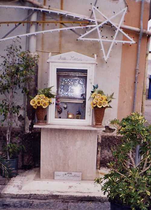 Il quadro si trova al centro di un piccolo tempio a stucco su base in