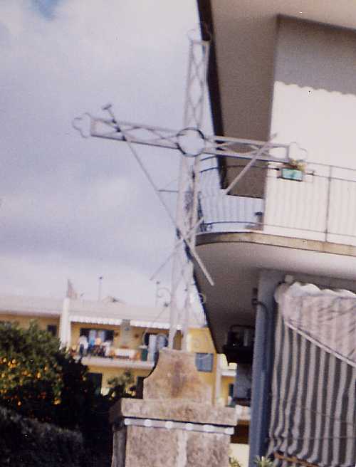 Croce in ferro battuto su base in pietra basaltica Via Nazionale presso Via Leopardi