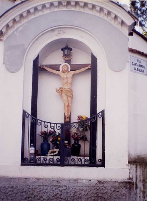 Croce in legno dipinta col Cristo crocifisso Cantone S. Maria La Bruna e Via Nazionale